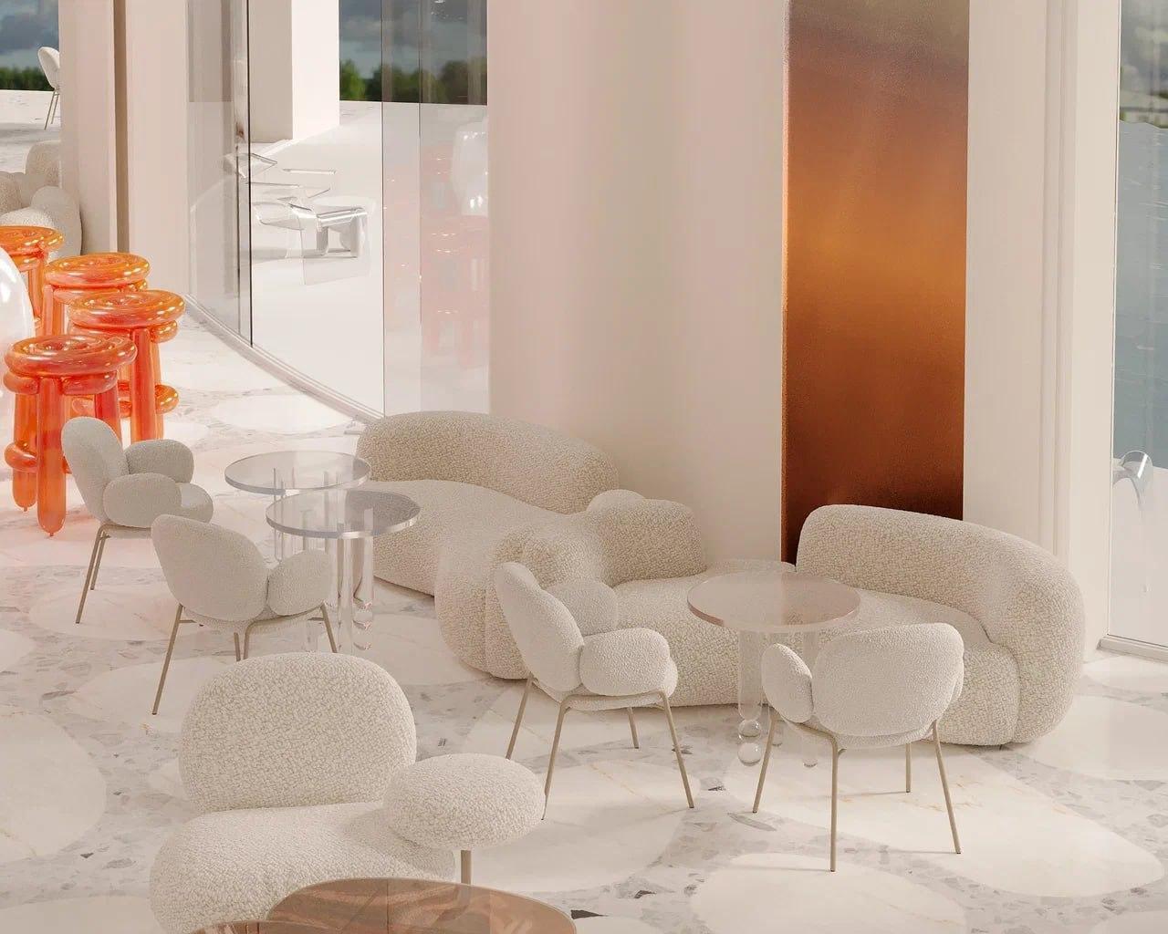 Архитектурное бюро Eleonor Lab представило проект ресторана площадью 100 квадратных метров для Парка облаков ещё в апреле 2025 года. Концепция включала пастельный интерьер с большими окнами, светлые тона, оранжевые стулья и парящую люстру в форме облака.