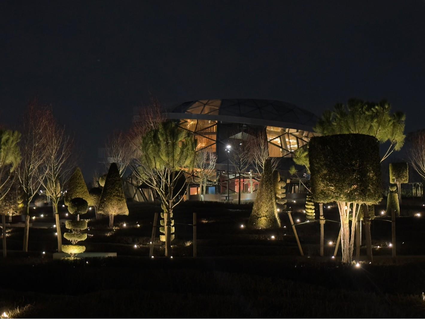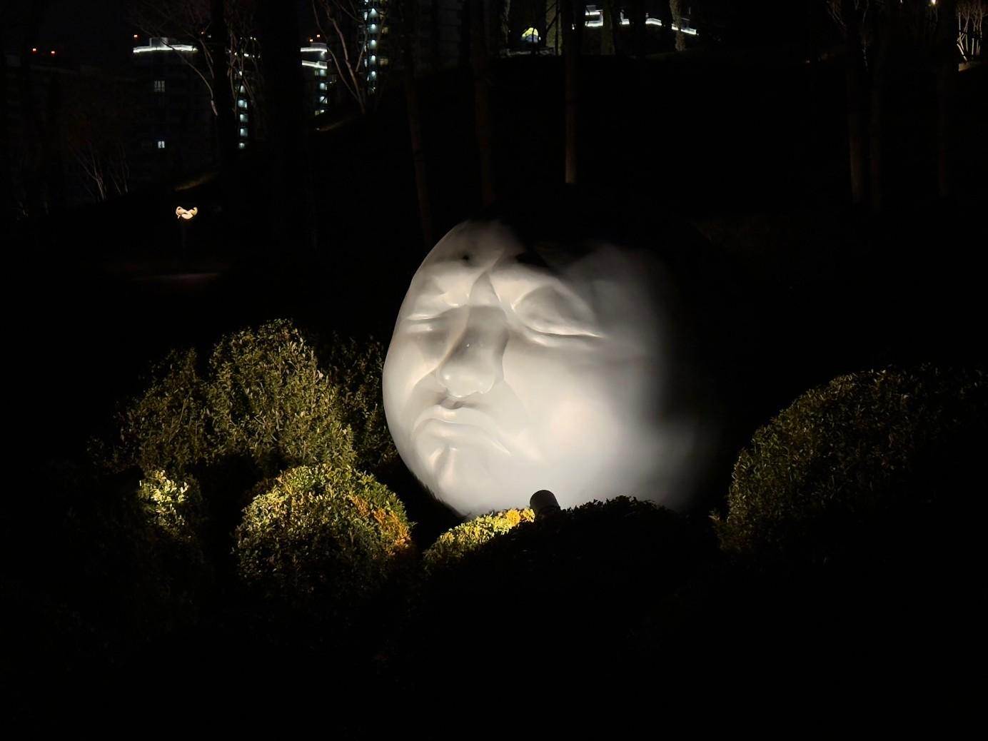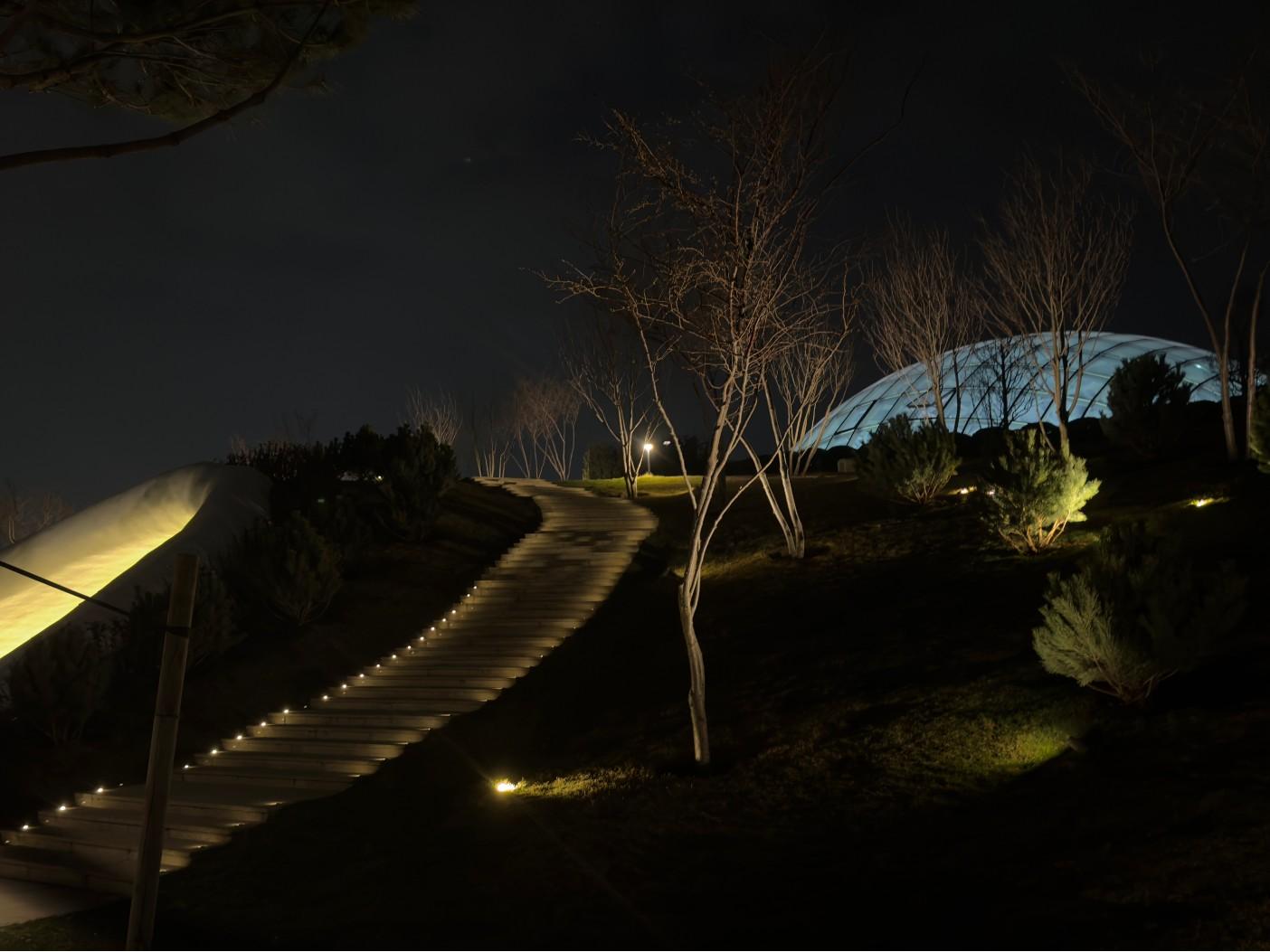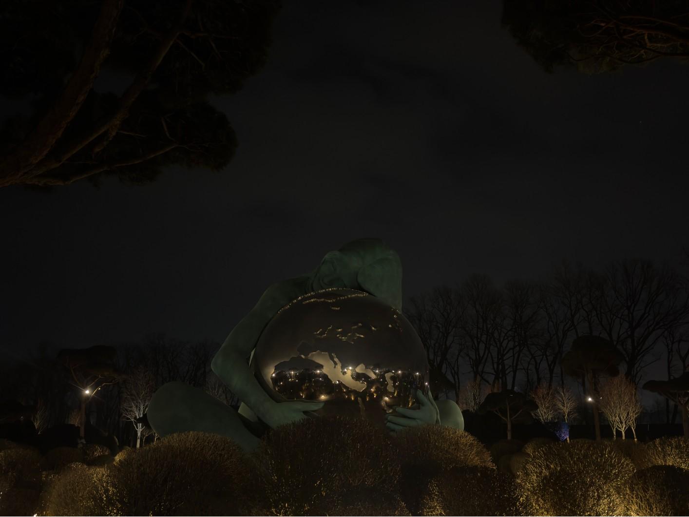 На снимке — арт-объект «Мать Земля», в котором после заката отражаются огни парка.