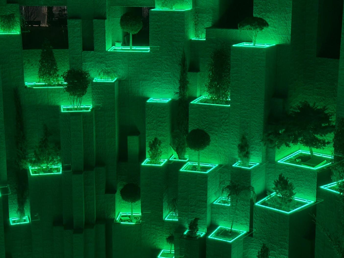 Вид на парящий сад с нижнего уровня.