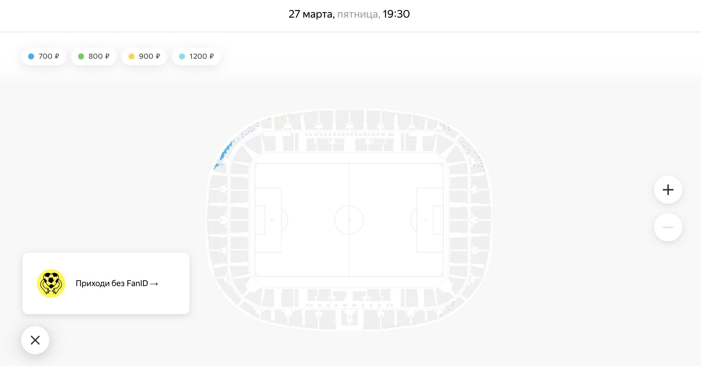 Ранее сообщалось, что цены на билеты на этот матч достигали 7000 рублей. К настоящему моменту осталось очень мало мест, а наиболее дорогие ряды уже полностью раскуплены. Для посещения игры зрителям не требуется FanID.