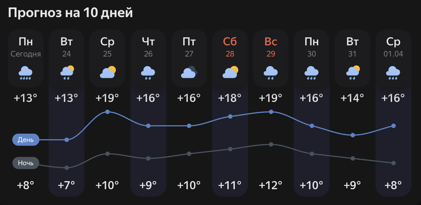 Прогноз погоды в Краснодаре на ближайшие 10 дней