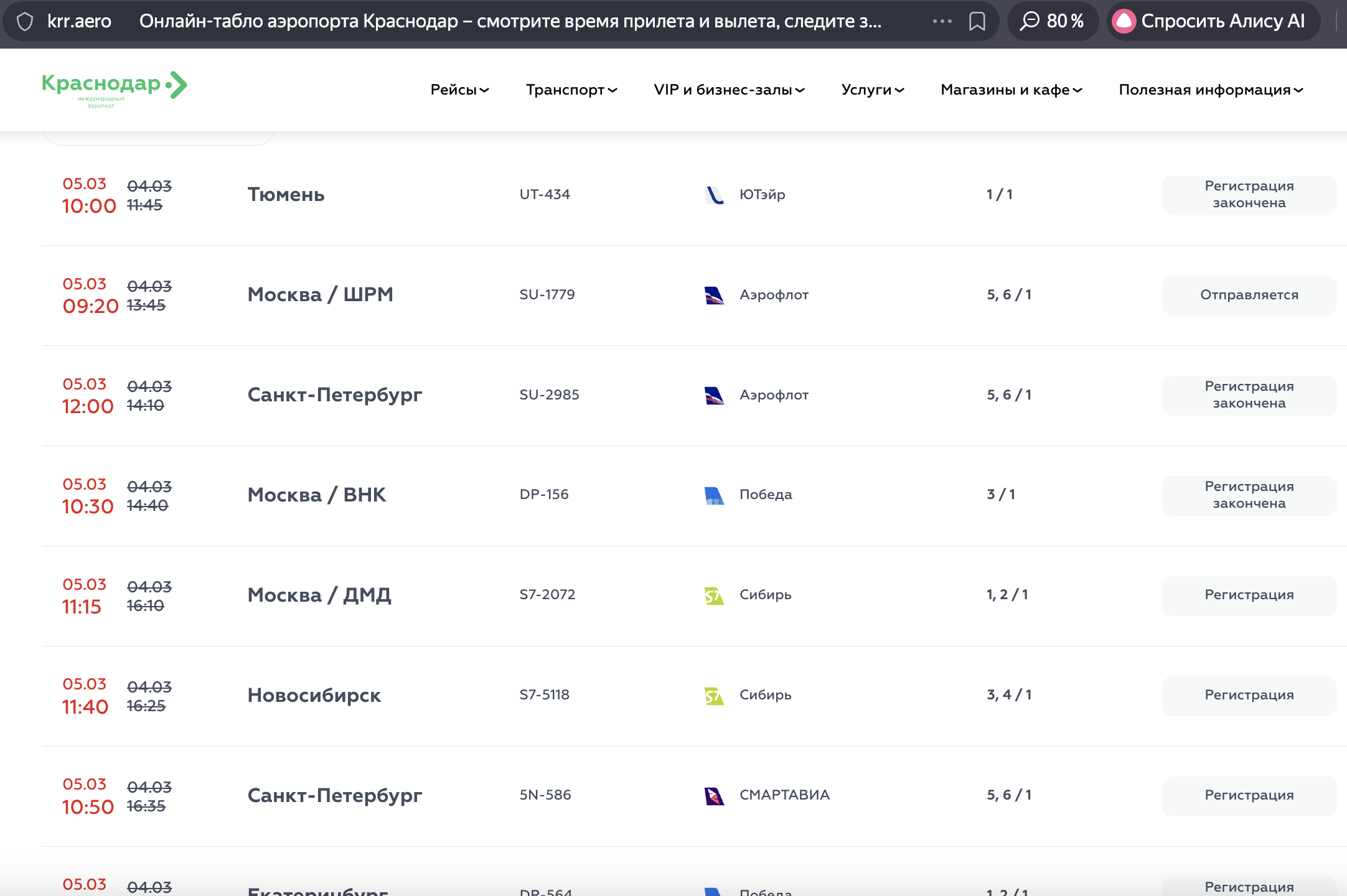 По данным на 09:30 5 марта, вылет 17 рейсов откладывается. Задержка затрагивает направления: